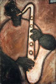 et tema med stole, studier i draperinger , kroppens sprog og musik i billedet saxofon & kissing billedmål: 120 x 80 cm
