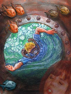 Her er en illustration fra serien, der blev anmeldt med tegning og grafik i Troldspejlet DR 1 1998.