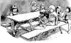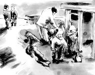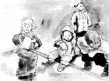 Sort-hvid akvareller fra bogen FORÆLDRESAMTALER fra forlaget Pædagogisk Forum, Århus 1995.
